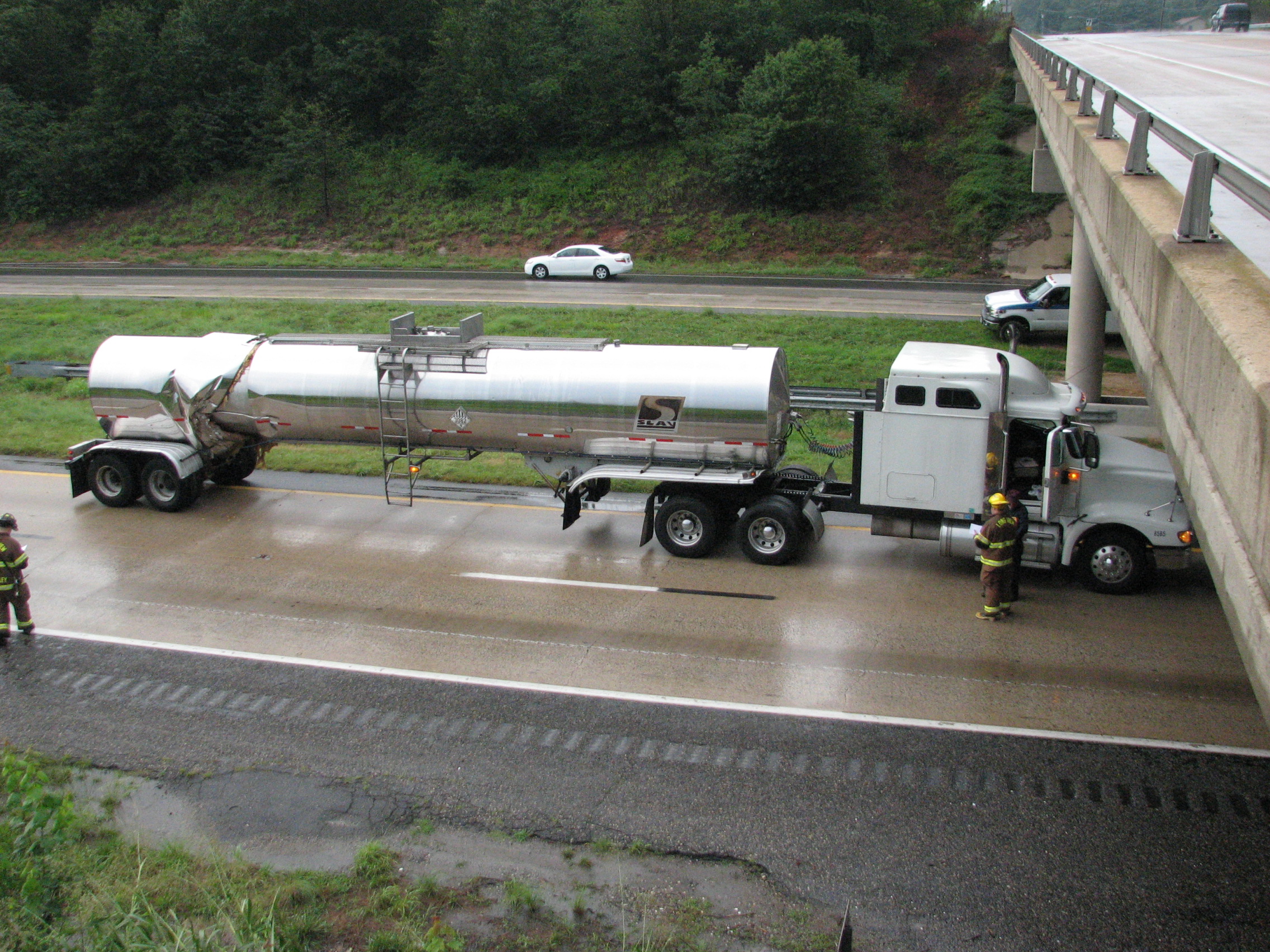 collision the Semi jack-knifed and hit an embankment further down the interstate from